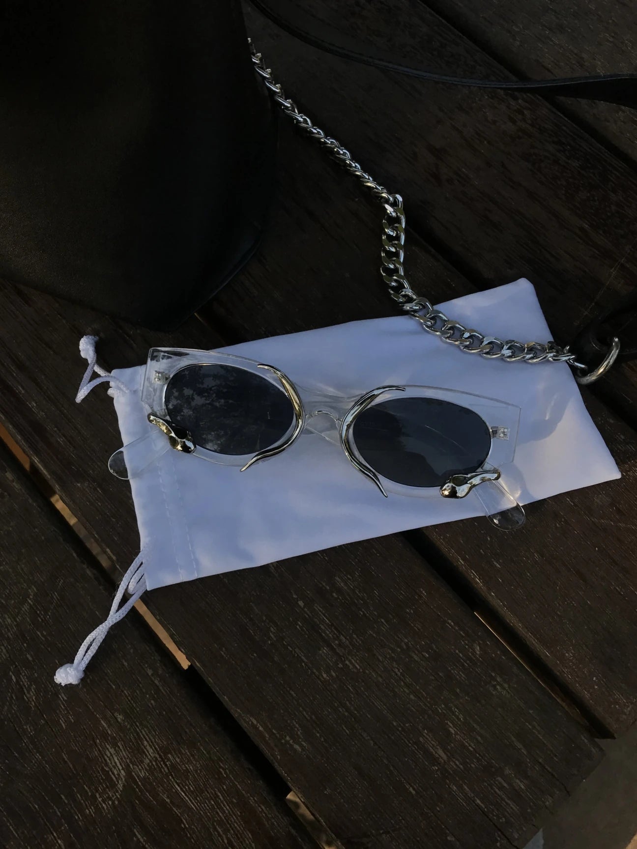 Naja Yılan Detaylı Şeffaf Gözlük, zamansız modeliyle Y2K tarzı kombinlerinizin vazgeçilmez parçası olacak.